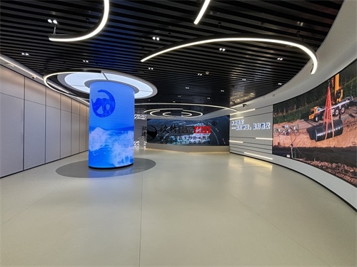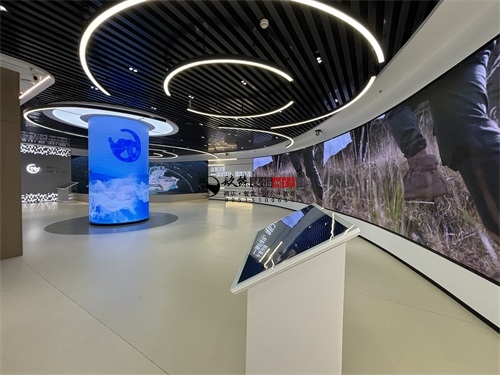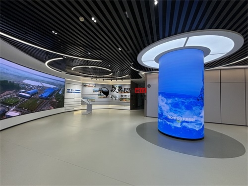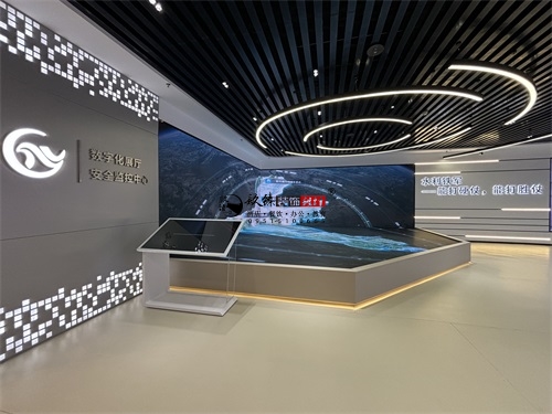 今天分享的是海原水利水电办公楼装修设计实景照片,该水利水电办公楼装修设计风格,是银川装修公司镹臻团队擅长的“科技极简风+行业主题叙事”融合设计,既贴合水利水电领域专业属性,又通过现代空间语言传递工程科技的质感,核心关键词可归纳为“沉浸式科技感、主题化场景、极简工业肌理”。从办公楼装修空间基底看,银川筑臻延续了其标志性的“极简工业风”特质——顶面采用黑色竖向金属格栅+嵌入式环形灯带,既用硬朗的工业肌理呼应水利工程的“硬核”属性,又通过流线型灯光弱化冰冷感;地面选择浅灰色哑光地坪,既保证办公空间的整洁耐用,又以低饱和色调衬托陈列物品的视觉重心。